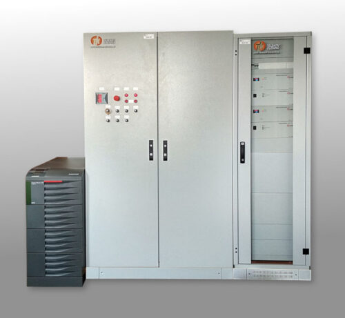 System zasilania SZS-TK-01, posiada UPS pracujący w trybie „on-line” (AC-DC-AC), zapewnia bezprzerwowe zasilanie urządzeń srk (obwodów/obiektów podłączonych do sieci elektroenergetycznej), napięciem o prawidłowych parametrach (jakości energii), wykorzystując energię z: